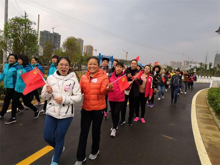 2018年3月8日上午,“巾幗心向黨·踏上新征程”市直機關(guān)女干部“環(huán)湖健身走”活動在愛蓮湖公園舉行,義芳副市長參加該項活動,并作了講話,市委副書記鐘得志宣布活動開始,來自市直各單位、國資委系統(tǒng)以及賀州學(xué)院等單位共550名女職工從市文化中心前廣場出發(fā),進行全程約3.8公里的環(huán)湖健步走活動。我集團公司楊麗霞等10名女職工參加了該項活動,全面展示了我集團公司女職工良好的精神風(fēng)貌。