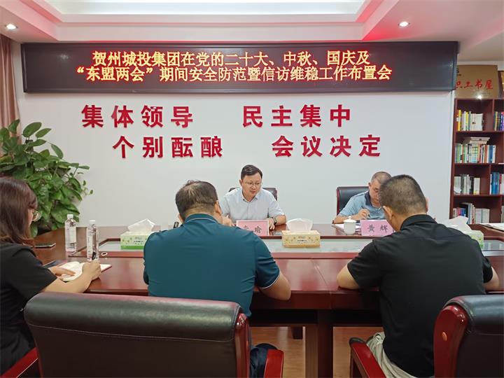 9月9日,賀州城投集團(tuán)召開在黨的二十大中秋國慶節(jié)及東盟兩會期間安全防范暨信訪維穩(wěn)工作布置會。集團(tuán)黨...